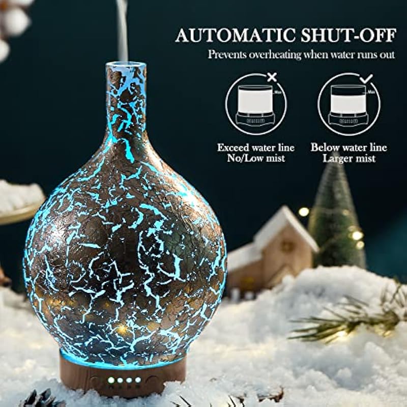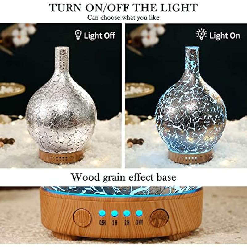 - UNIQUE ART DECORATIVE DESIGN – They are handblown glass so each glass globe is unique. Our glass essential oil diffuser has an elegant starry pattern glass cover and wood grain decorative base.