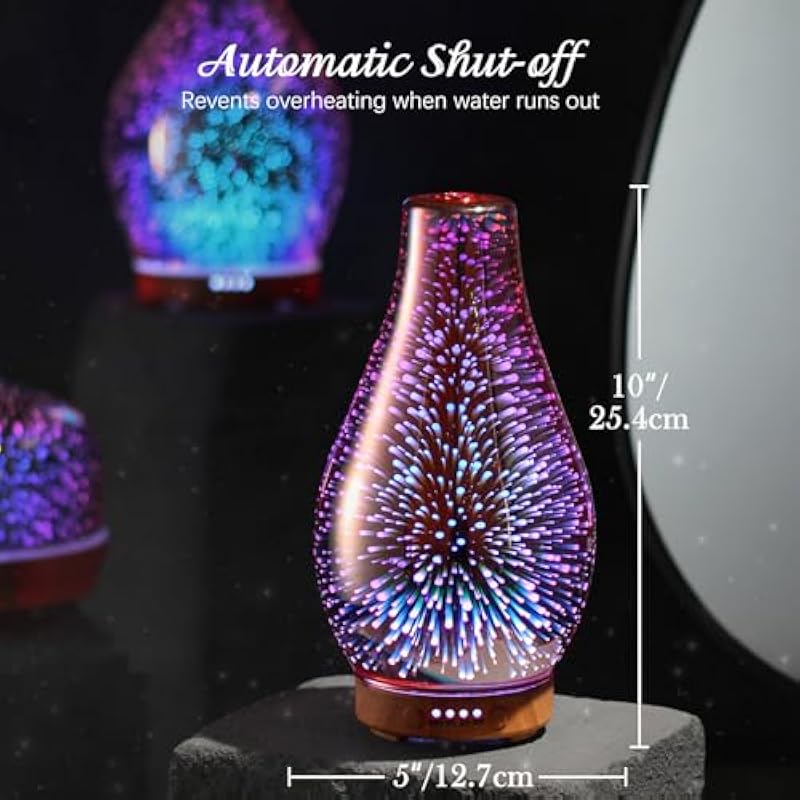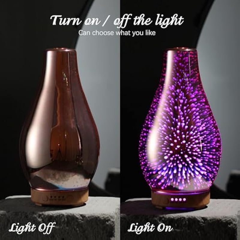- UNIQUE ART DECORATIVE DESIGN – They are handblown glass so each glass globe is unique. Our glass essential oil diffuser has an elegant starry pattern glass cover and wood grain decorative base.