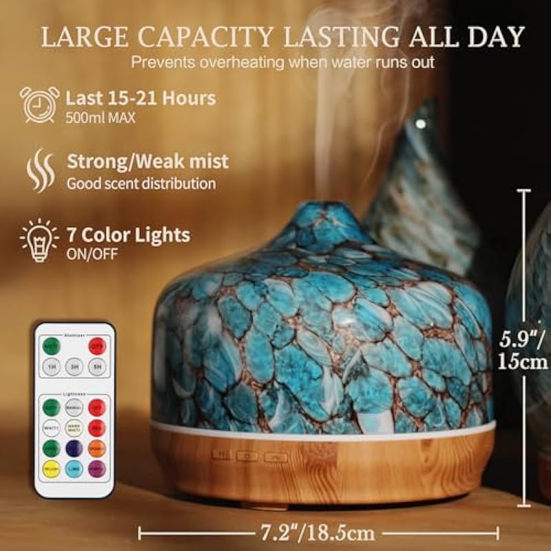 - UNIQUE ART DECORATIVE DESIGN – They are handblown glass so each glass globe is unique. Our glass essential oil diffuser has an elegant starry pattern glass cover and wood grain decorative base.