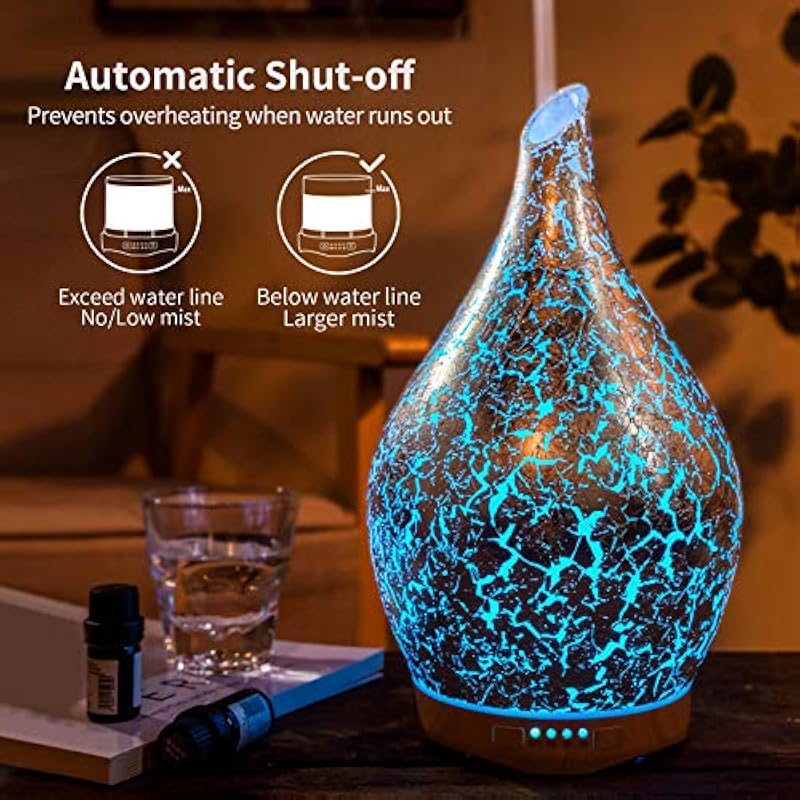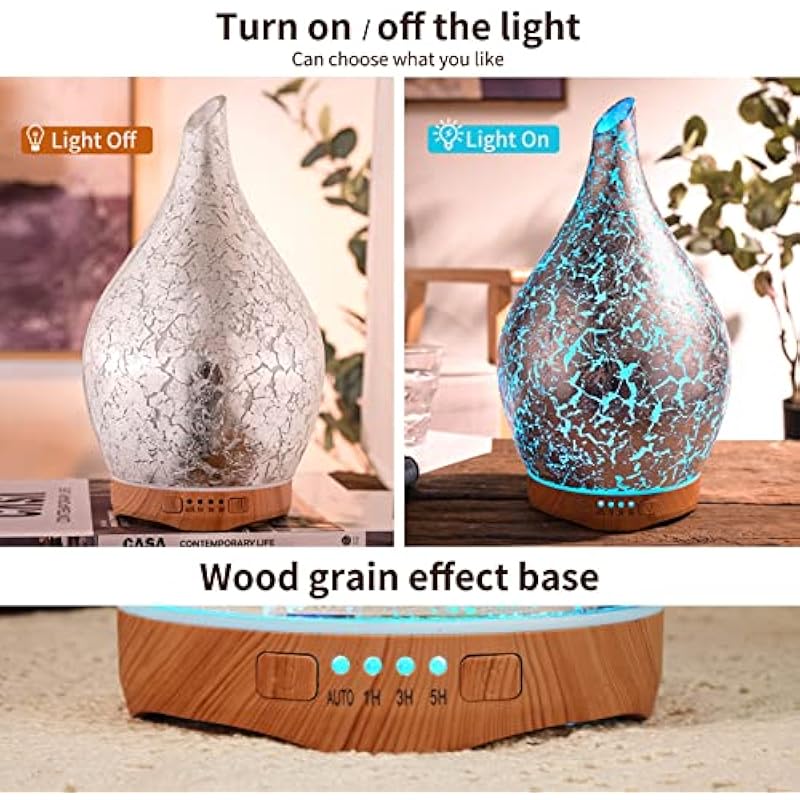 - UNIQUE ART DECORATIVE DESIGN – They are handblown glass so each glass globe is unique. Our glass essential oil diffuser has an elegant starry pattern glass cover and wood grain decorative base.