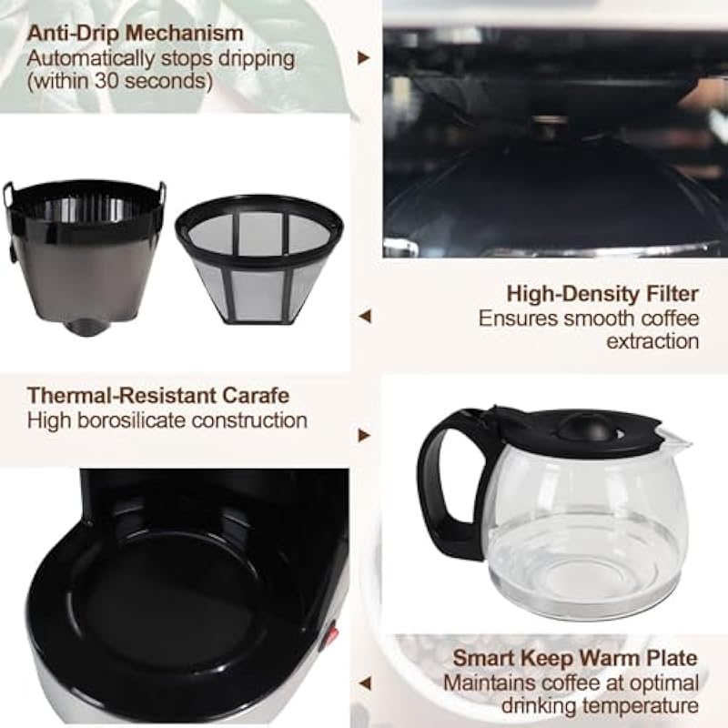 - 10 Cup Capacity: Ideal for gatherings, effortlessly brews approximately 10 cups of coffee at once to satisfy family breakfasts, friend get-togethers, or weekend parties. One drip coffee maker is sufficient, eliminating the hassle of repeated brewing. Host every guest with ease and enjoy uninterrupted coffee moments