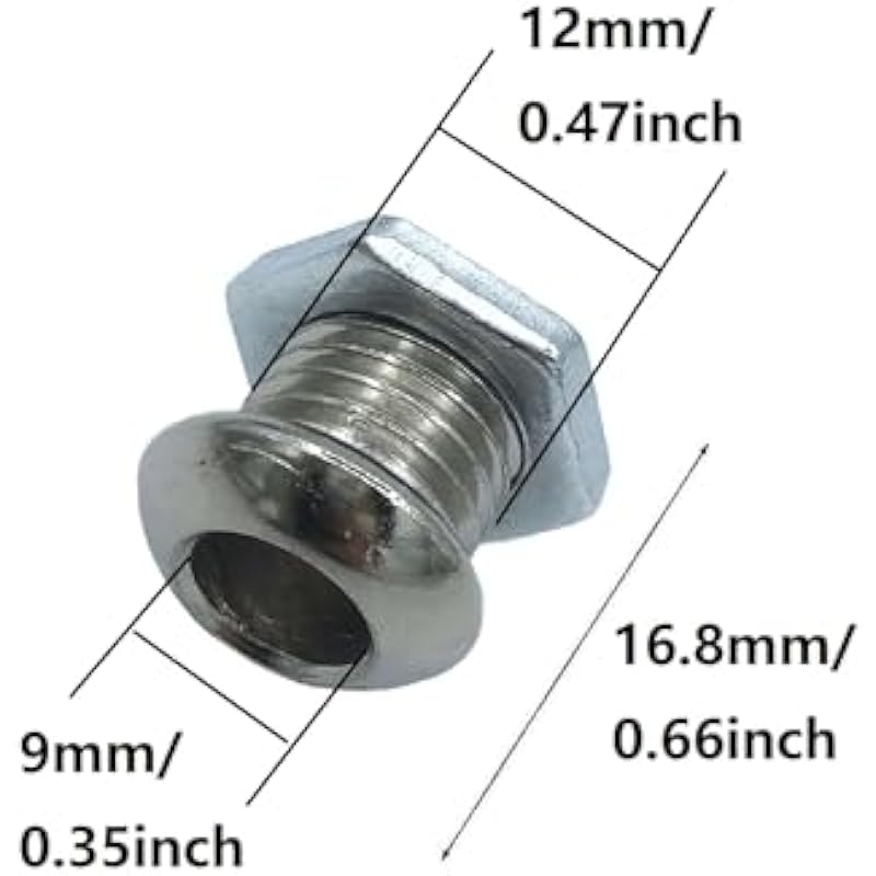 - Dimensions: Overall length: 16.8mm/0.66inch; Threaded shaft length: 13mm/0.51inch; Ventilation hole diameter: 9mm/0.35inch.
