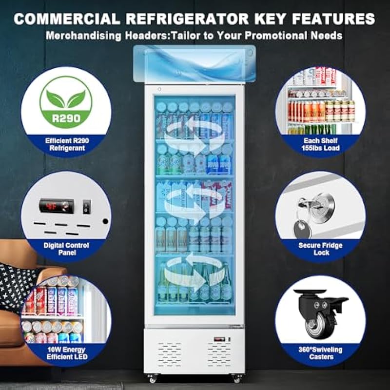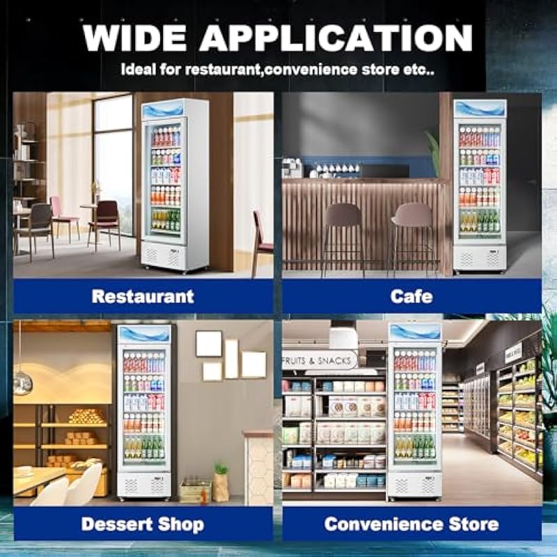 - Our upright commercial display cooler features a user-friendly digital temperature display and controls, allowing you to effortlessly monitor and adjust the temperature within the range of 34 to 46℉.It utilizes a compressor cooling method and operates with R290 refrigerant