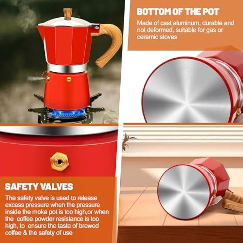 - Compatible with All Stovetops: This stovetop espresso maker is suitable for any stove, such as gas, induction stove, ceramic stove, electric stove, alcohol stove and propane camping stove. You don’t need to go out, you can easily make your favorite lattes, mochas, smoothies, macchiatos, cappuccinos, and americanos. We use high quality ingredients to make the extraction pits to mellow the coffee and bring high quality coffee to you to enjoy