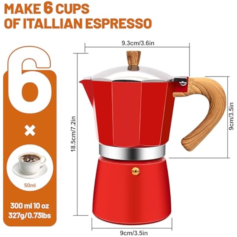 - Easy to Use: When you use it for the first time, the coffee pot may emit an unpleasant smell, please don’t worry too much, this is a normal phenomenon. Pls add tea, oranges, detergent, or other items to remove odor and wash several times before use. Fill the lower part of the italian espresso maker with water, put the ground coffee into the percolator, put the top on, and place the espresso pot on the cooker to boil. After using the stovetop espresso machine, please rinse it with clean water