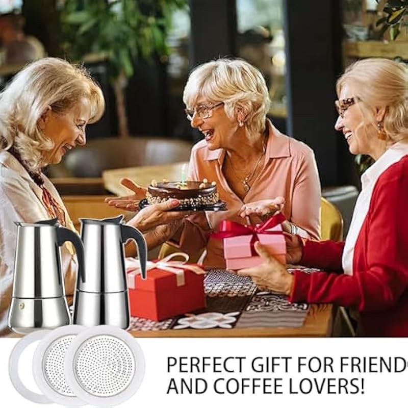 - Premium Materials and Sizes: Standard espresso coffee cup is 50 ml. 12 cup/20 oz/600 ml; The filter screens are made of high-quality stainless steel with an outer diameter of 3.03inch. The silicone gaskets are made of food-grade, heat-resistant silicone with an outer diameter of 3.42inch. Mocha coffee maker with strong aroma can make delicious espresso for you in 5 minutes, you will be impressed by its rich flavor and aroma immediately