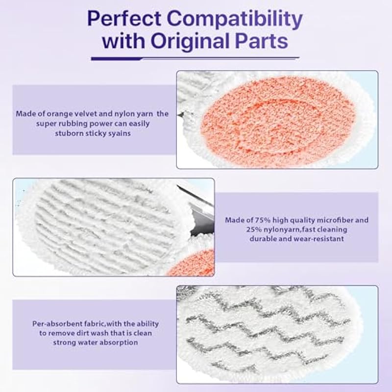 - 【COST EFFECTIVE GOODS】: Includes 3 Styles of Steam Mop Pads. Easy to Replace and Clean, No Tools Required. Simply Take Out and Replace From Your Machine Unit When Needed