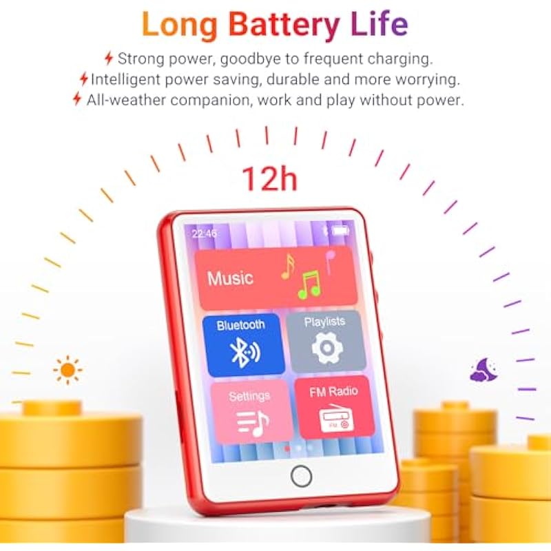 - MP3 Player with Bluetooth 5.3:The M3 music player has built-in Bluetooth 5.3 for faster data transfer (up to 40% faster), more stable connections, and longer connection distances. It reduces power consumption, extends battery life, and makes it easy to connect to distant Bluetooth headphones or Bluetooth speakers.