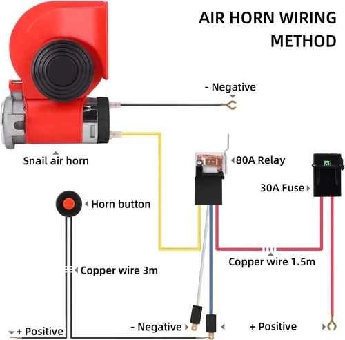 12V Air Horn with Compressor Automotive Relay Snail Horn (red with switch).