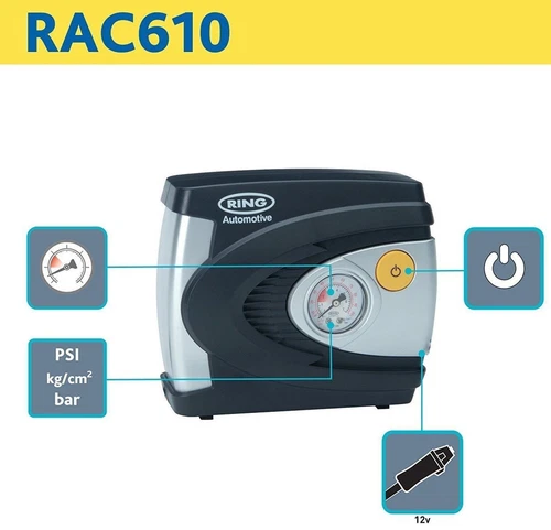 12v Car Tyre Inflator Air Compressor Bike, Cycle Pump Plug Analogue Gauge RAC610