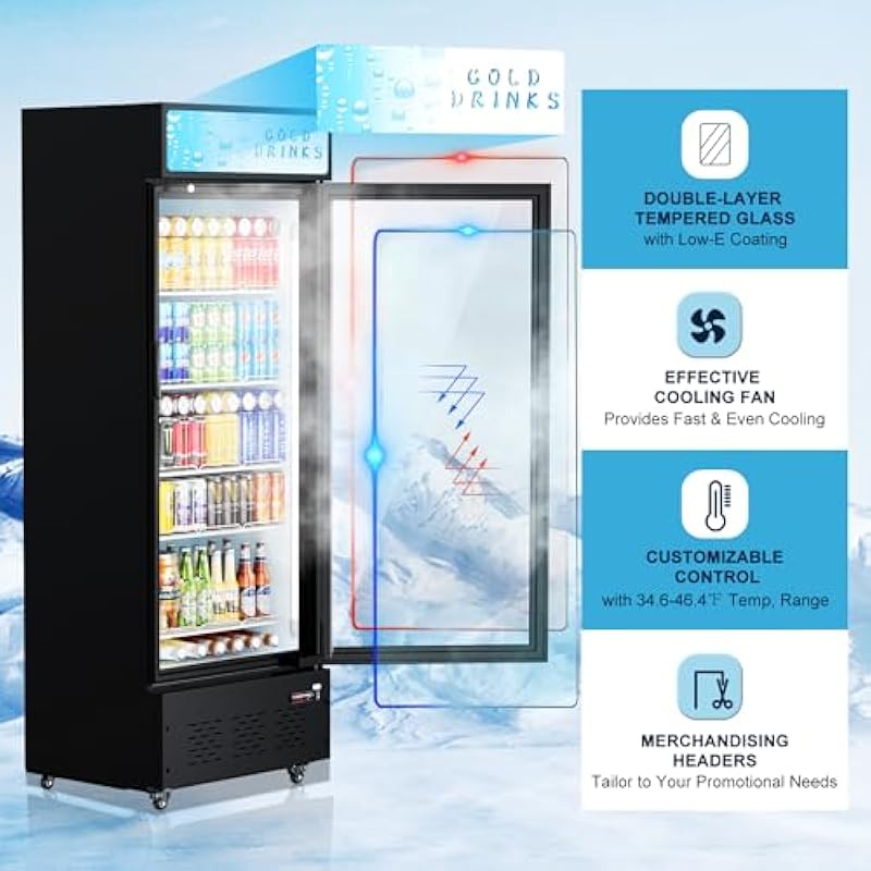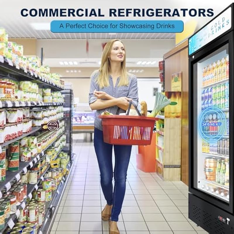- Our upright commercial display cooler features a user-friendly digital temperature display and controls, allowing you to effortlessly monitor and adjust the temperature within the range of 34.6 to 46.4℉.It utilizes a compressor cooling method and operates with R290 refrigerant