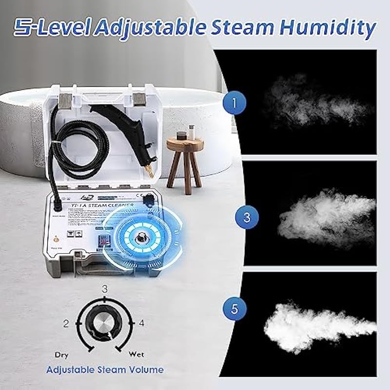 - [READY IN 15 SECONDS]: This premium Tankless Steam Cleaner heats up swiftly, providing continuous, high-temperature steam of up to 230 °F within just 15 seconds, along with the option to adjust the steam pressure to your needs.