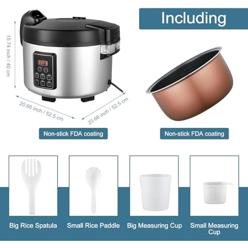 - Large Capacity Commercial Rice Cooker: With a 15L capacity, it can cook substantial amounts of rice, suitable for catering, restaurants, or large gatherings. Reduces the need for multiple cooking cycles, saving time and energy.