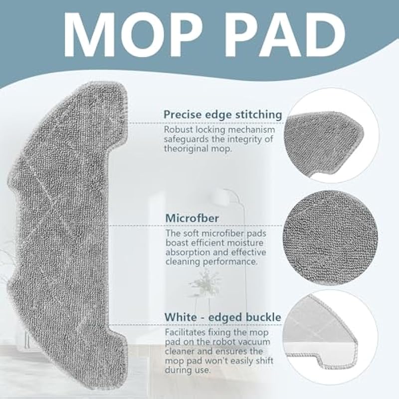 - Package Includes:One main brush, four filters, four mop pads, six side brushes and a clean brush