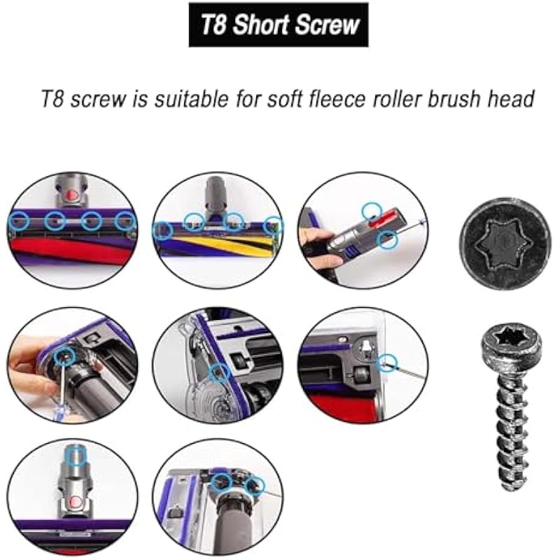 18 Pcs Screws for Dyson V6 V7 V8 V10 V11 Vacuum Cleaner Power Pack/Battery, 3Pcs T8 Long Screw, 5Pcs T8 Short and10Pcs Universal Cross Screw