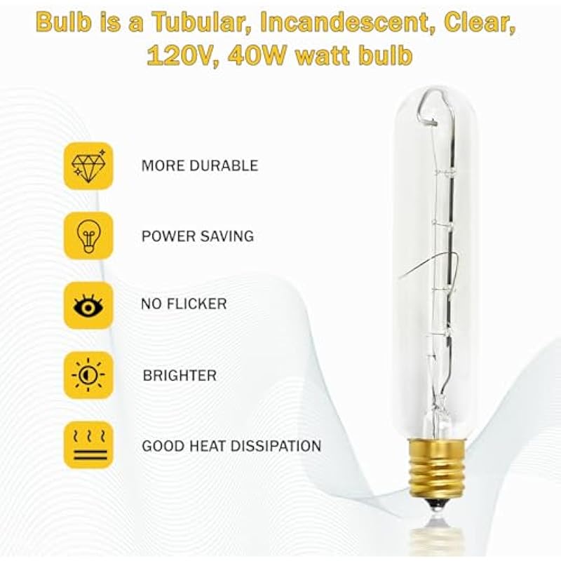 - Efficient and Reliable Lighting: 120/130 Volt 40 Watt Bulb Type T61/2 with an E17 threaded base, ensuring optimal brightness and longevity.