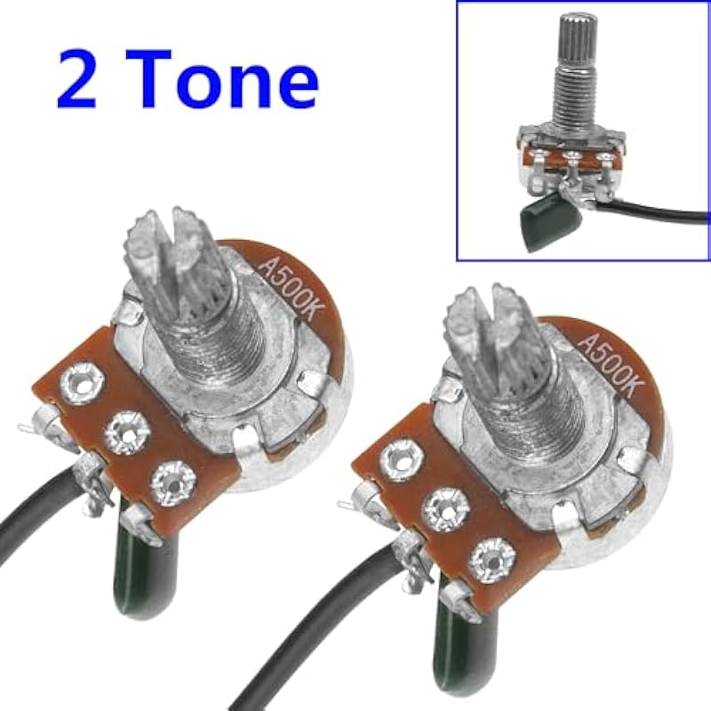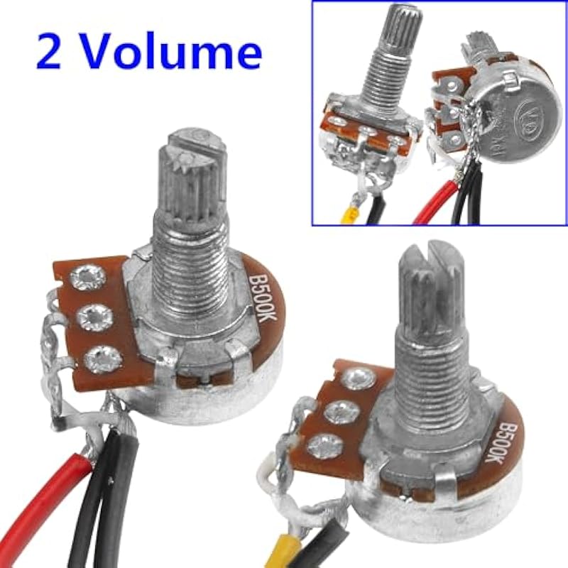 - Package includes set of wiring harness kit, 2Pcs A500k Pots,2Pcs B500K Pots,1Pcs 3 Way Toggle Switch and 1Pcs toggle swtich tips.Great replacement parts for electric guitar