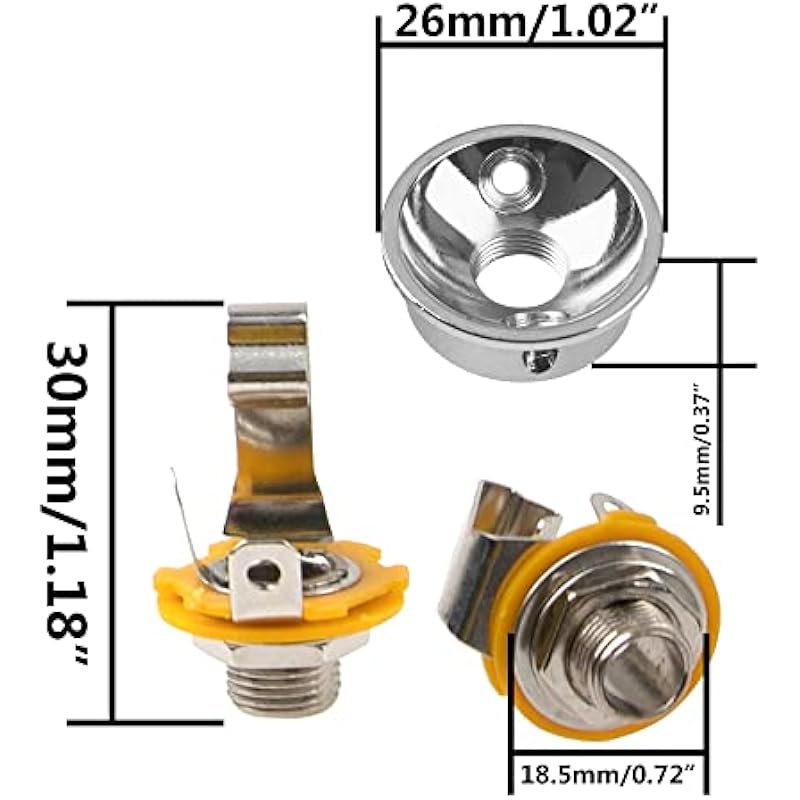 - Guitar Electrosocket Jack Plate Size: 26 x 9.5mm/1.02 x 0.37 inch; Guitar Mono Jack Size: 30 x 18.5mm/1.18 x 0.72 inch.