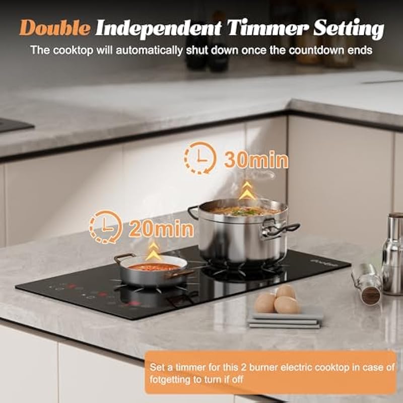 Noxton 36 Inch Induction Cooktop, 5 Burners Electric Cooktop, Upgraded Induction Stovetop with Flex Zone, Power Boost, Pause, 9 Power Levels, Child Safety Lock, Timer, 220-240V Hard wire
