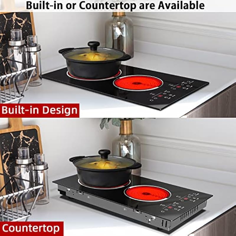 - 【3000W High Power & 9 Heating Levels】The total power of this 2 burners electric cooktop is 3000W (1800+1200W). Electric stove 2 burners has 9 heating levels, suitable for various cooking methods, such as stewing, boiling, steaming, stir frying, etc