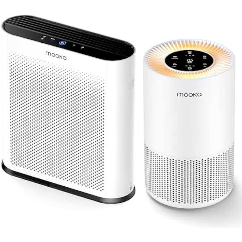 - ALL-IN-ONE AIR PURIFIER FOR HOME: This is MOOKA newly designed True HEPA Air Purifier, which contains all the functions of a powerful air purifier. The air purifier for home covers an area up to 1200ft², not only equipped with an imported true H13 HEPA filter that can quickly catch peculiar odors, smoke, dust, pollen, and dander, but also with functions like Aromatherapy, 4-fan speed, sleep mode, child lock, timer, filter replacement indicator, and the optional night light.