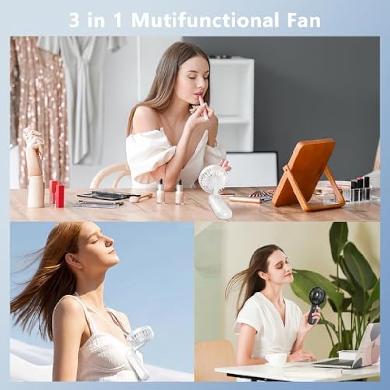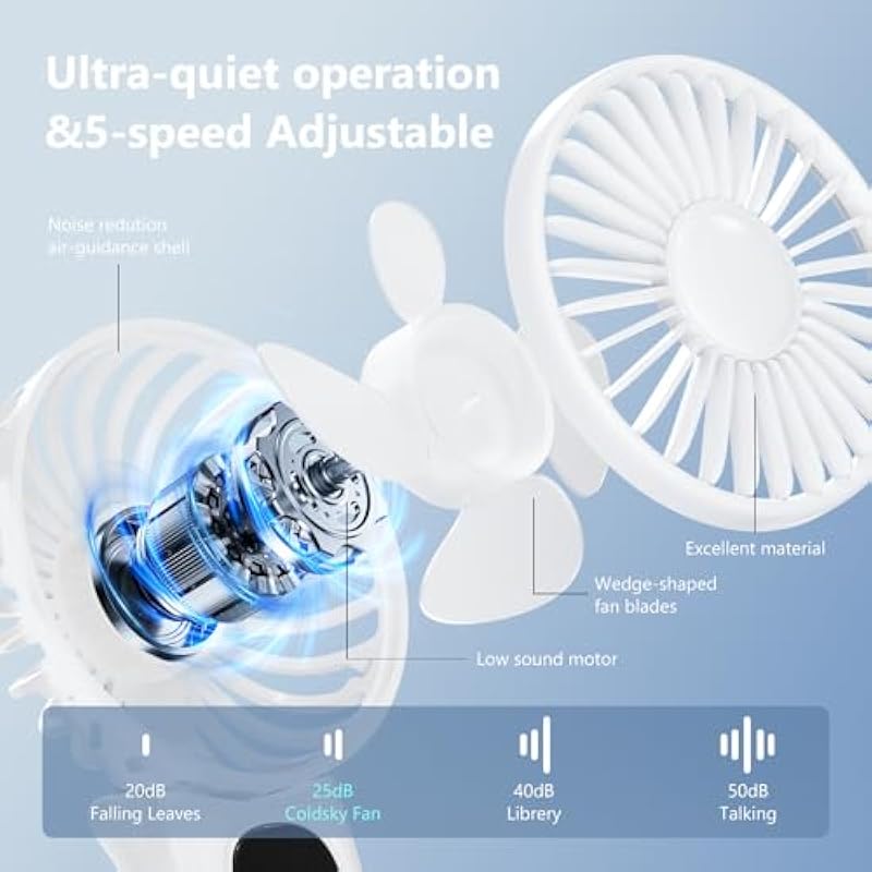 Socool Belt Fan, 4 Levels Adjustable, 13,000 RPM, Super Strong Wind, Up to 25 Hours of Continuous Blowing, 4 in 1 (Stool, Neck Hang, Tabletop, Handheld), LED Remaining Indicator & Japanese Instruction