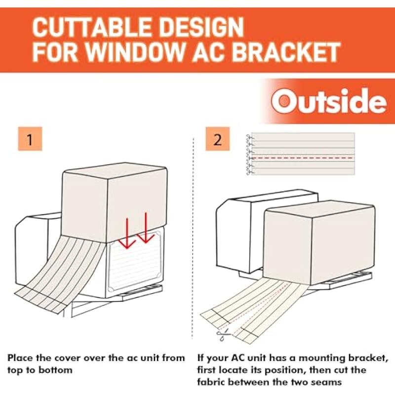 - 【The Outdoor Cover Can Work with Mounting Brackets】The sewing threads at the bottom of the window ac covers for outside is designed for easy trimming to accommodate units with support brackets. If your unit has no bracket, simply slip the ac cover for outside unit on directly