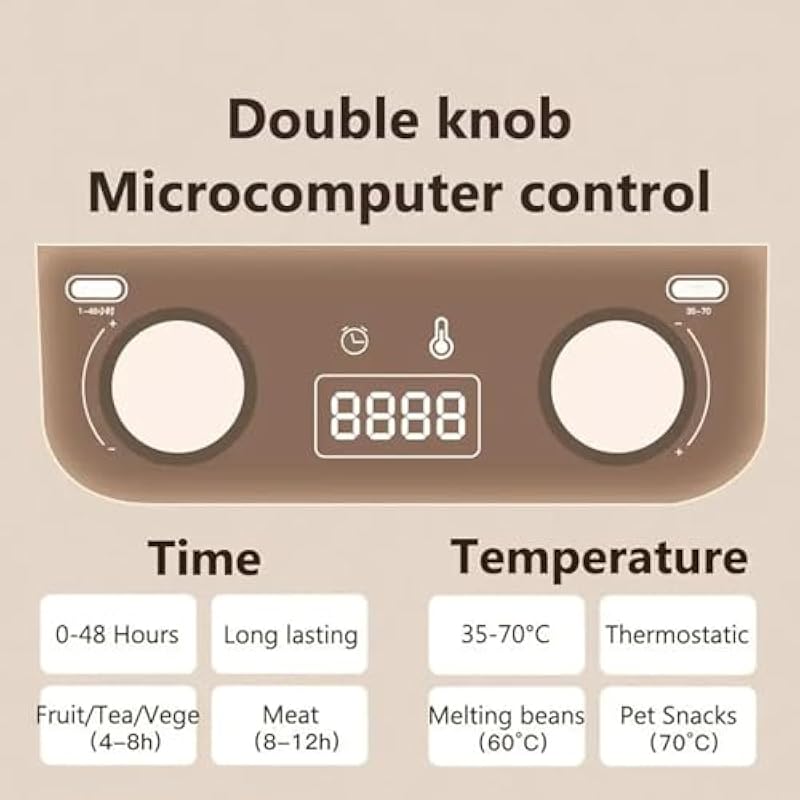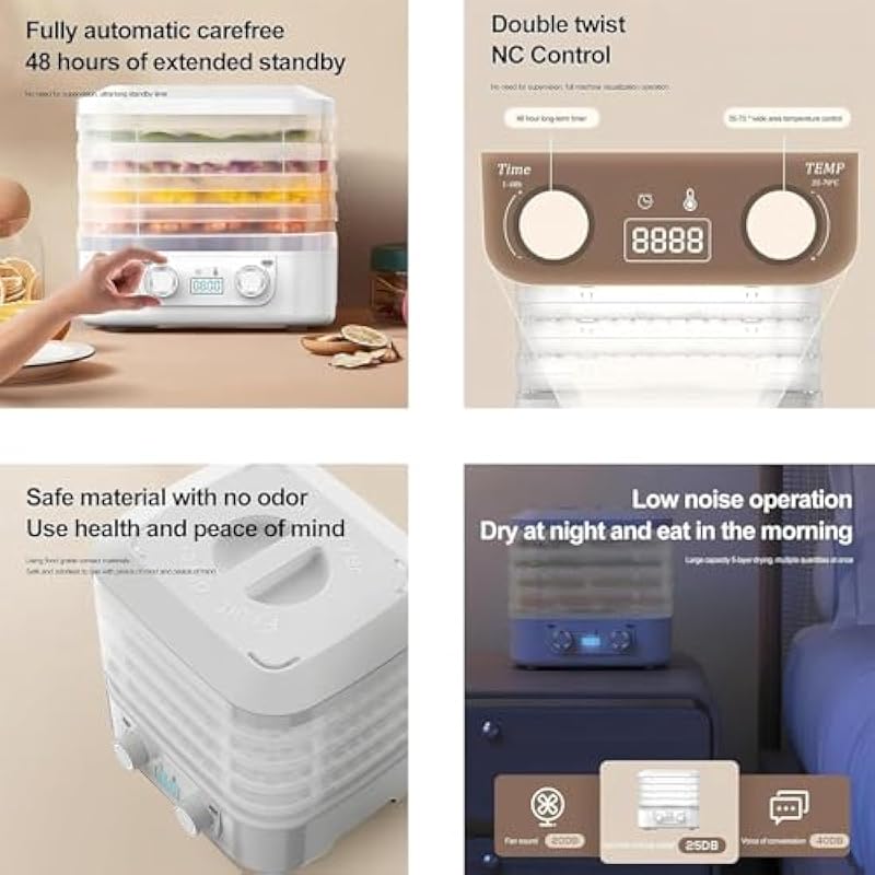 - 2025 Upgraded Digital Precision Control Features a 2025 enhanced digital panel with adjustable temperature, letting you customize drying for fruits, meat, veggies, and more. Eliminates guesswork for consistent, perfect results every time.