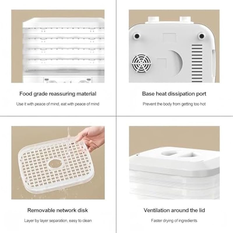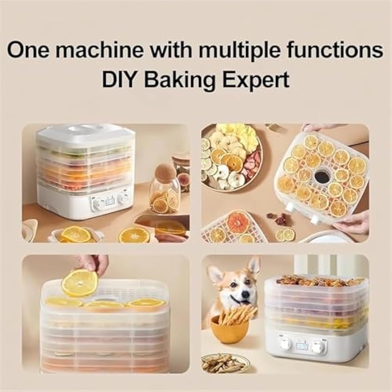 - Trays for Large-Batch Drying 5 spacious, stackable trays let you dehydrate multiple ingredients simultaneously (e.g., fruit, jerky, kale chips) in one cycle. Handles 2–3 pounds of food at once, ideal for meal prep, preserving seasonal produce, or family-sized snack batches.