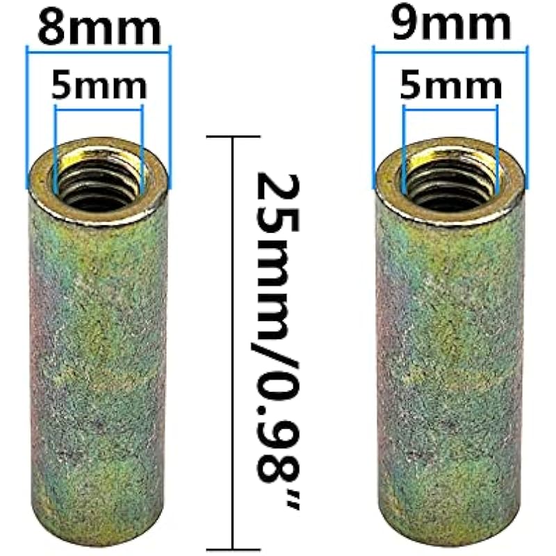 - Internal thread:5mm; Outer diameter:8mm & 9mm; Column Length:25mm/0.98″