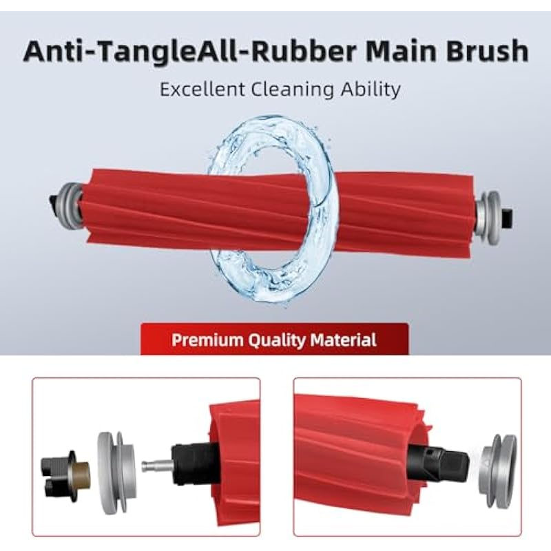 - 【Zero-tangling Main Brush】:The two main rolling brushes made of full rubber material can easily pickup 99% of debris. [Please clean roller brushes every 2 weeks and replace it every 6-12 months for keep suction power and performance.]