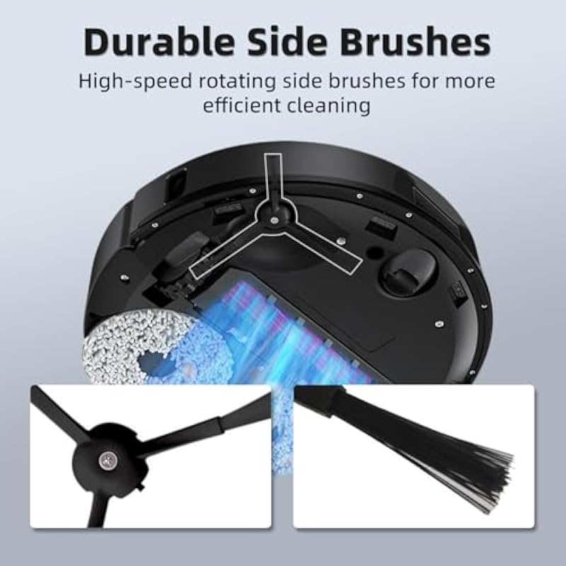 - 【Replacement Parts】: 2 Rubber Main Brush, 4 Mop Cloth Pads, 6 Vacuum Bags, 6 Side Brushes, 4 Filters, 1 Cleaning Brush, 1 Screwdriver. These replacement parts can seamlessly snaps in and out of place quickly and effortlessly, Completely compatible with your robot,keeps your home robot vacuum at optimal performance.