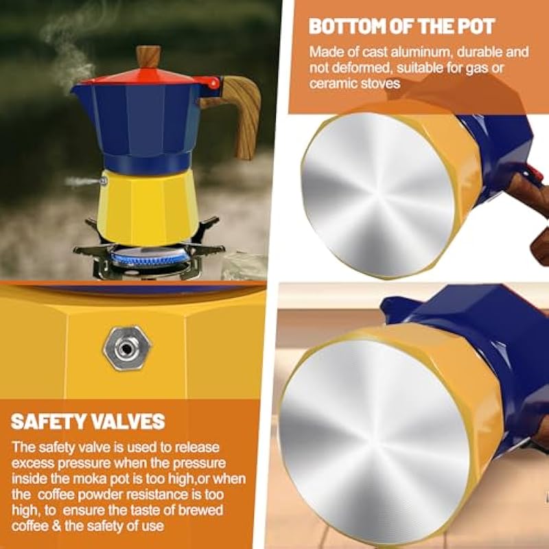 - How to Prepare the Coffee: When you use it for the first time, the coffee pot may emit an unpleasant smell, please don’t worry too much, this is a normal situation. Pls add tea, oranges, detergent, or other items to remove odor and wash several times before use. Can be used on gas or ceramic stove tops, allows you to create and enjoy the best-tasting coffee with utmost ease. Classic Italian style design ensures even heat distribution for rich, velvety coffee flavor and aroma