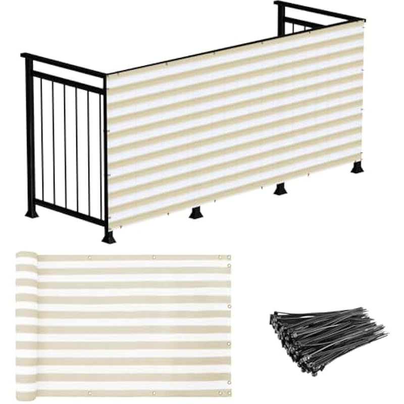| Style | 3′ x 12′ Beige + Beige White Strip Balcony Fence |