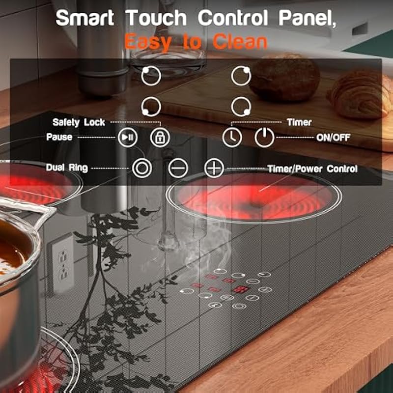 - 🦛【Safety and Convenience Stovetop】Beyond the safety lock and 99 min timer, Cooksir 4 burner electric cooktop is designed with a range of safety and convenience features to make your cooking experience enjoyable and worry-free. It includes residual heat indicator that displays whether the burners are still hot after use, thus preventing accidental burns. Furthermore, it’s also designed for easy cleaning with its smooth glass surface, making the post-cooking clean-up a breeze. All in all, this 30 inch electric cooktop delivers a blend of superior performance, versatility, safety, and convenience.