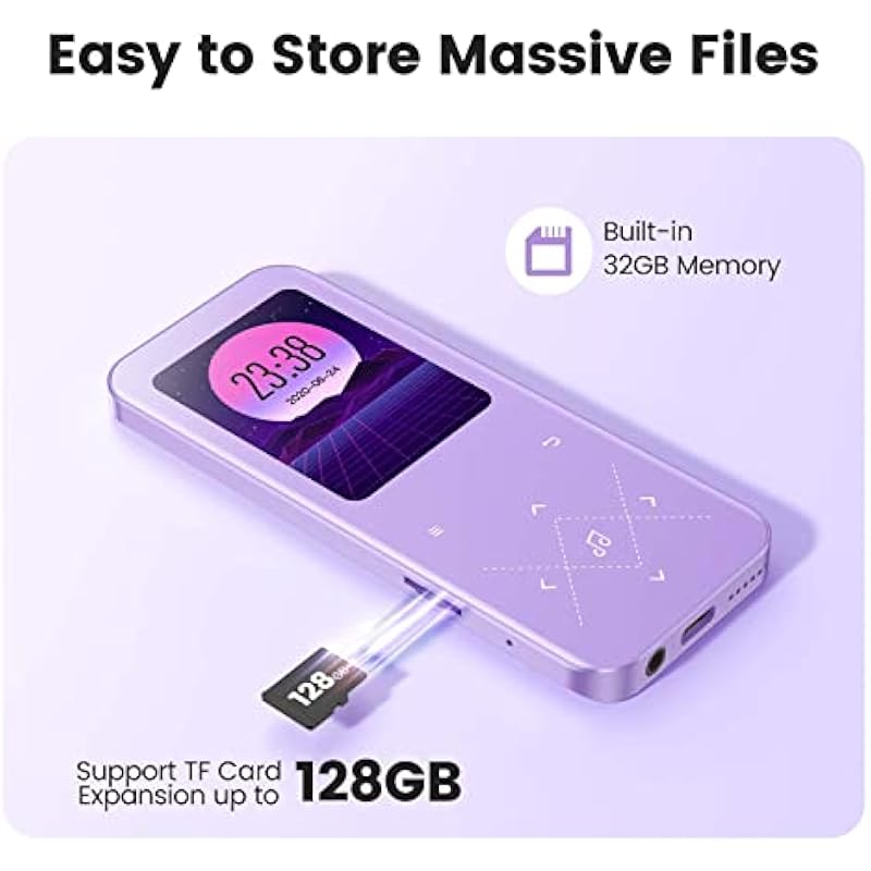 - 【32GB Large Capacity】AGPTEK MP3 music player offers 32GB large-capacity storage space and supports TF card expansion up to 128GB (TF card not Included), which means that you can download thousands of your favorite songs and store a lot of files.