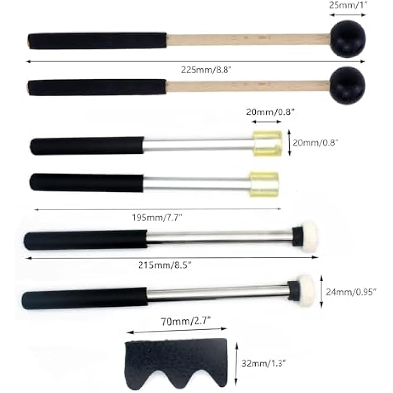 - Rubber heads mallets make the players easy to get enough sound out of the various percussions.