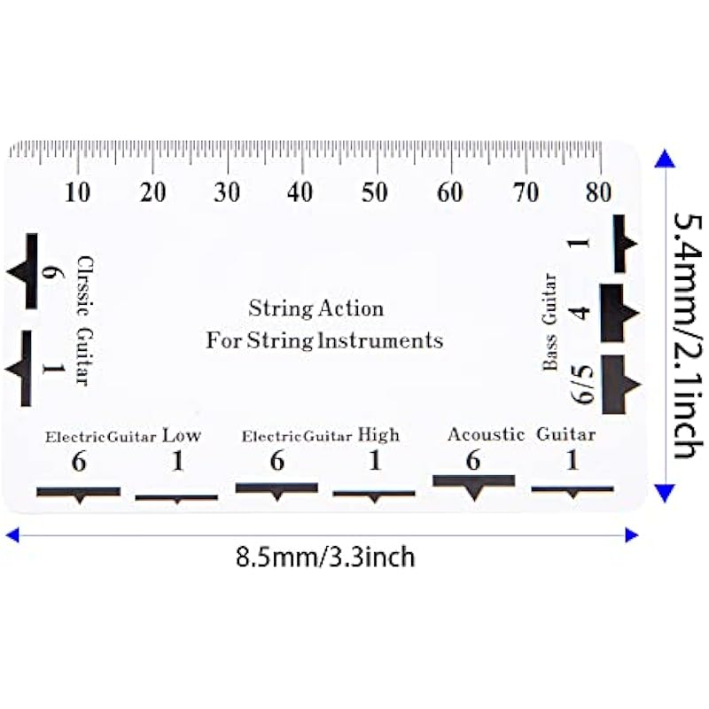 - This guitar string action gauge ruler can measure string height, bridge saddle height, saddle slot depth, fret slot depth and nut height and accurately measure other setup adjustments.