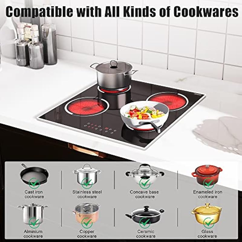 - [6000W Built-in Electric Cooktop 220-240v] Generally, electric ceramic cooktop with low power are slower to heat. In order to solve this problem, our electric ceramic stove will provide a high power add up to 6000W. To achieve such a high power, the 24” electric stove top needs to be connected to 220-240v. It comes without a plug, if you don’t know how to install it, you need to find an electrician for help. High-power burner, faster heating.