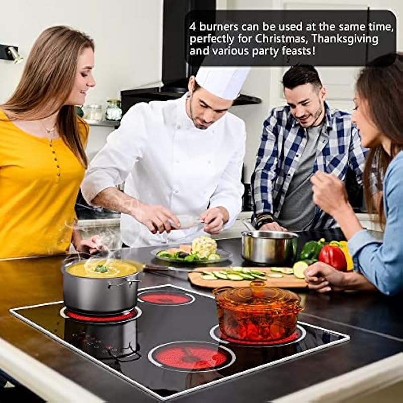 - [Multifunctional Electric Cooktop 4 Burners] If you don’t like those knob model electric cooktop, you can try our sensor touch control electric cootkop, which has more function that help cooking, such as 99-minute timer, auto shut-off, child safety lock, high temperature warning, overheat protection function, etc. Our 24 inch electric cooktop with these features not only make your cooking easier but also protect your safety better.