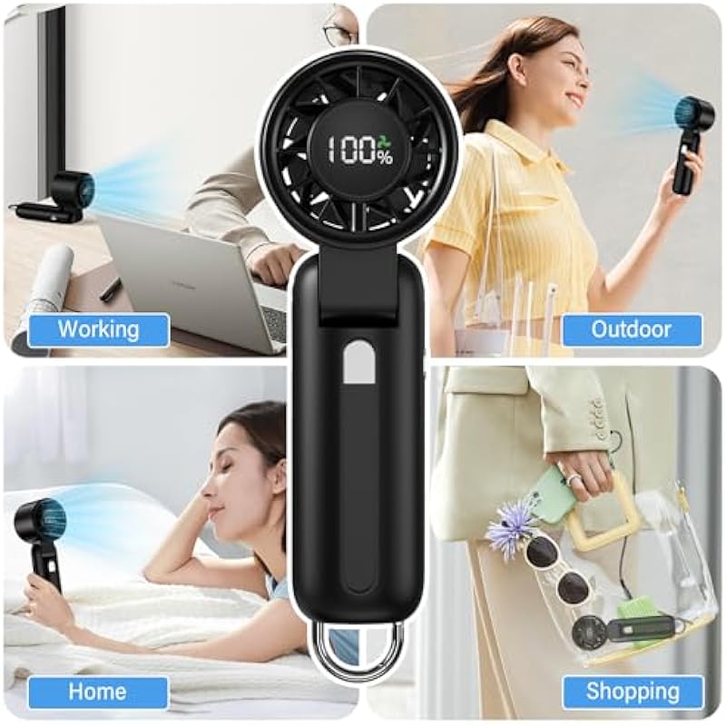 - 4-𝒊𝒏-1 𝑴𝒖𝒍𝒕𝒊-𝑼𝒔𝒆 𝑷𝒐𝒓𝒕𝒂𝒃𝒍𝒆 𝑭𝒂𝒏 Easily switches between handheld, neck, clip-on, and desk fan modes. Its 180° foldable design and compact size make it perfect for travel, work, outdoor use, and hot weather.