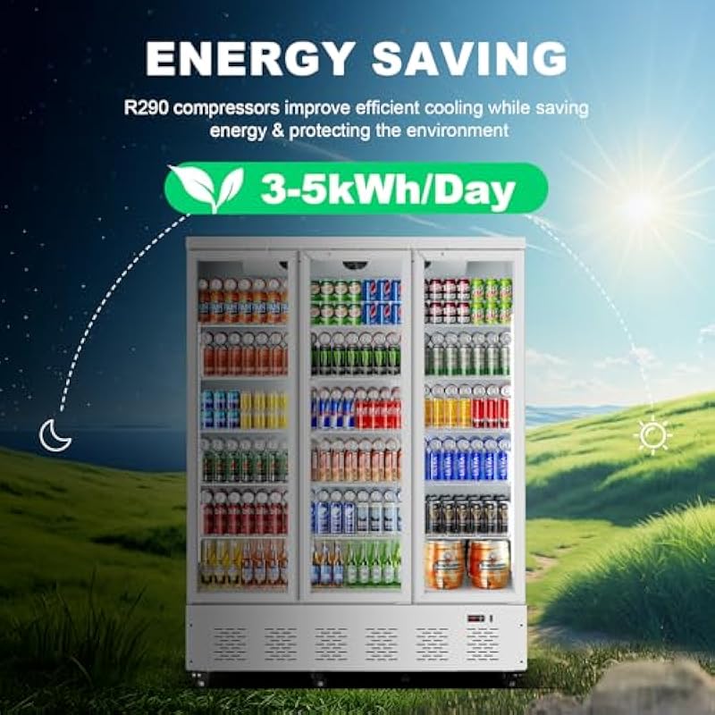 - Our commercial display cooler features a user-friendly digital temperature display and controls, allowing you to effortlessly monitor and adjust the temperature within the range of 34.6 to 46.4℉.It utilizes a compressor cooling method and operates with R290 refrigerant.