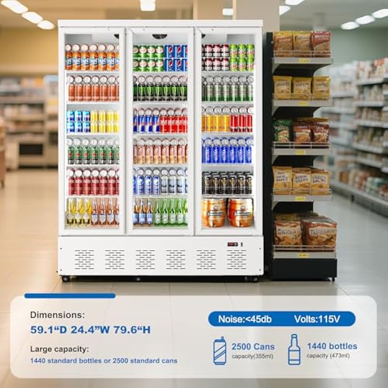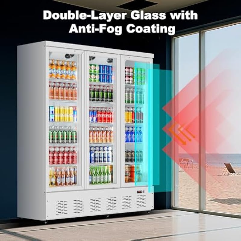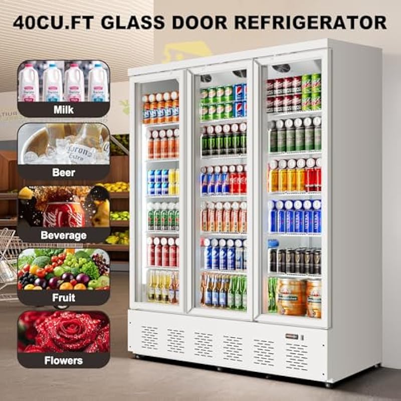 40.5 Cu.ft. Commercial Refrigerators 3 Glass Door Beverage Refrigerators Commercial Fridge Upright Cooler with Soft LED Light and 15 Adjustable Shelves for Restaurant Grocery Stores Home