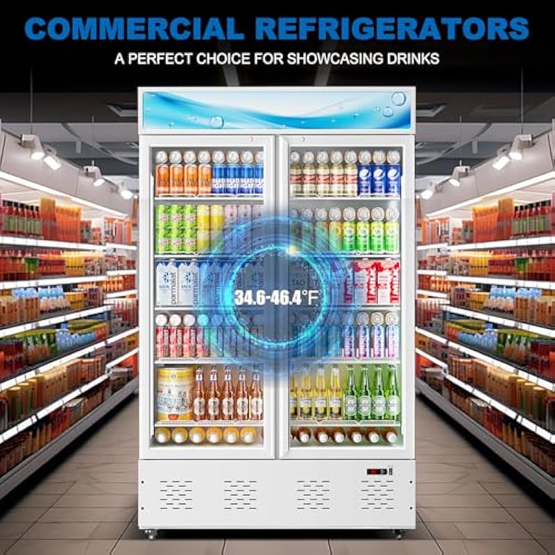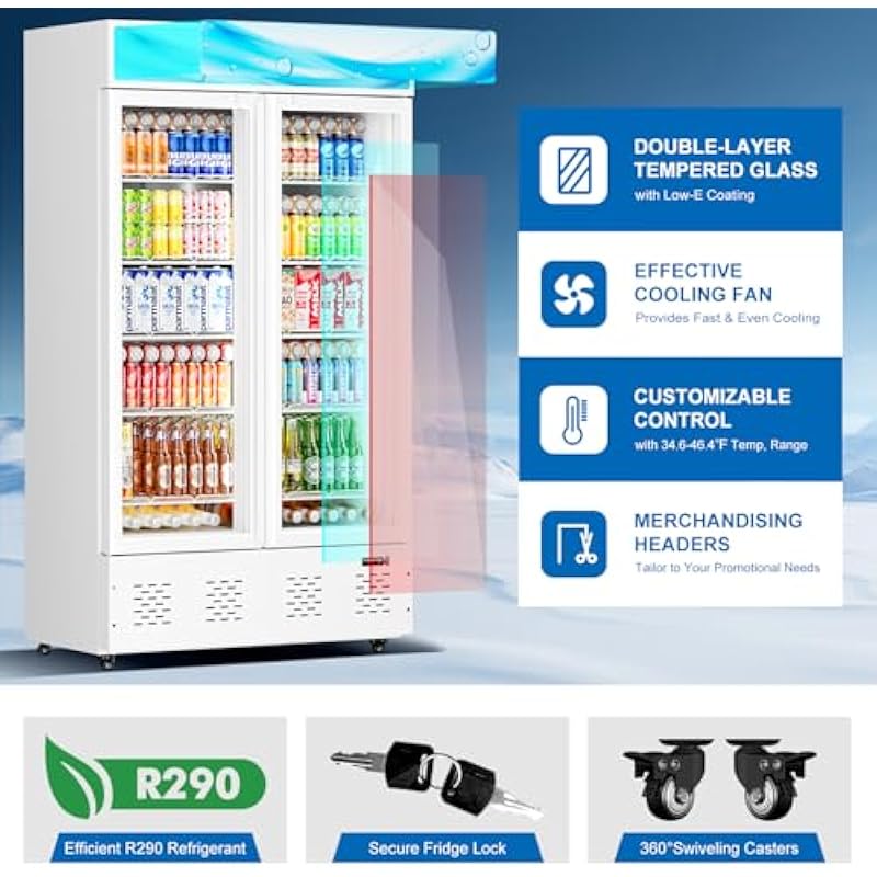 - Our upright commercial display cooler features a user-friendly digital temperature display and controls, allowing you to effortlessly monitor and adjust the temperature within the range of 34 to 46℉.It utilizes a compressor cooling method and operates with R290 refrigerant