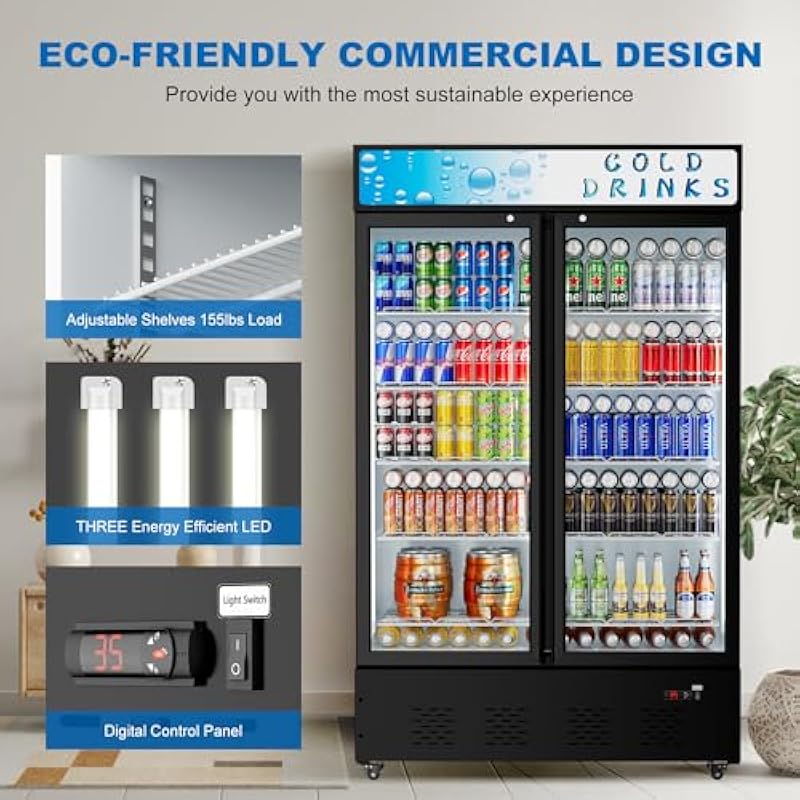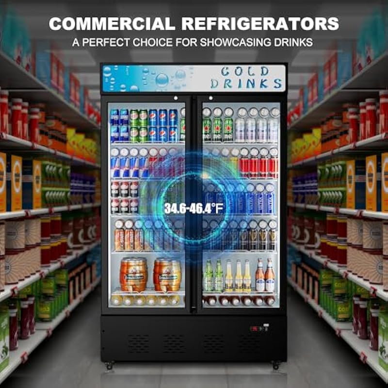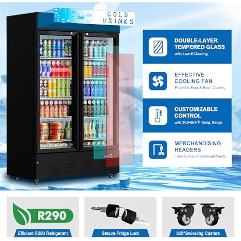 - Our upright commercial display cooler features a user-friendly digital temperature display and controls, allowing you to effortlessly monitor and adjust the temperature within the range of 34.6 to 46.4℉.It utilizes a compressor cooling method and operates with R290 refrigerant.