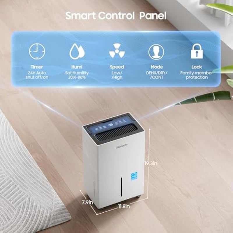 - Intelligent Dehumidifier:Advanced technology and creativity design make it have high performance chip. Dynamic detection keeps the humidity within the ideal range, the dehumidifier will stop when it reaches the target level and auto restar when the humidity is higher than the set value, intelligent and power-saving. Exclusive power-off memory function can be used with smart socket, automatically resuming operation after power restoration, suitable for home or special space like RV and boat
