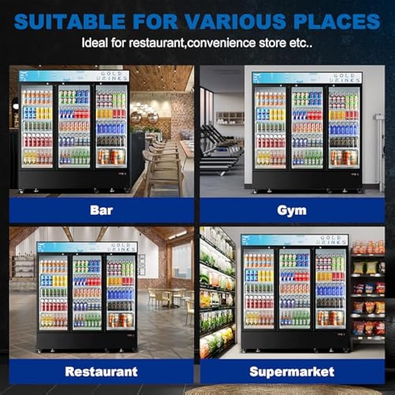 - ECEVT commercial fridge is great for commercial businesses or grocery. Features a secure locking door and a set of keys. This ensures the safety of your products, whether you want to prevent children from accessing beer and wine or lock up your merchandise during the night.