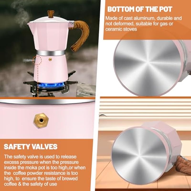- How to Prepare the Coffee: When you use it for the first time, the coffee pot may emit an unpleasant smell, please don’t worry too much, this is a normal situation. Pls add tea, oranges, detergent, or other items to remove odor and wash several times before use. Can be used on gas or ceramic stove tops, allows you to create and enjoy the best-tasting coffee with utmost ease. Classic Italian style design ensures even heat distribution for rich, velvety coffee flavor and aroma