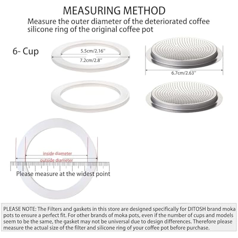 - 6 Cup Aluminum Moka Pot Express Coffee Maker Percolator Italian Classic Mocha Coffee Machine with 2 Pcs Filter with 3 Pcs Seals for 6 Cup Coffee Maker Replacement PartsCore parts are all available, no need to search for suitable parts separately. Commonly used filters and seals are in stock and can be replaced at any time.