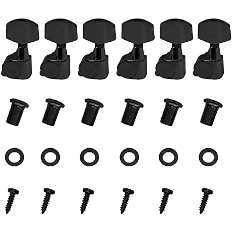 - Package includes: 3pcs left guitar machine heads; 3pcs right guitar machine heads; 6pcs ferrules; 6pcs screws; 6pcs threaded bushings.